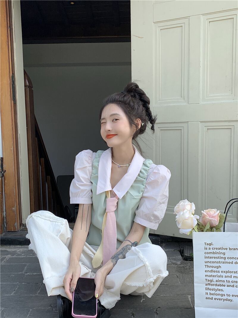 スリーブシャツ カラーサマールーズスタイルトップス 夏物 香港の味54492210325