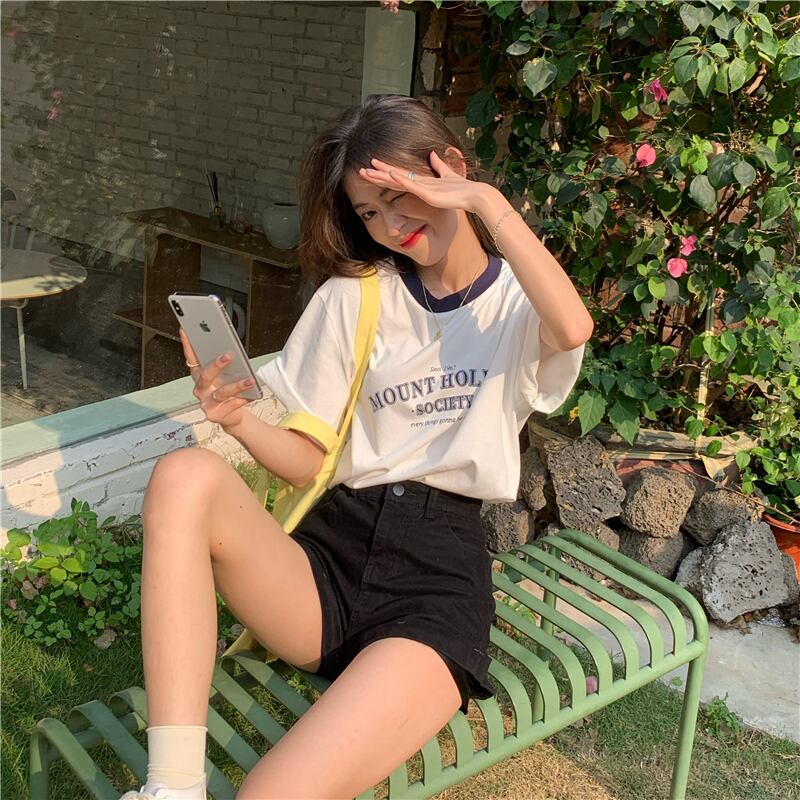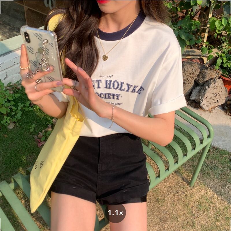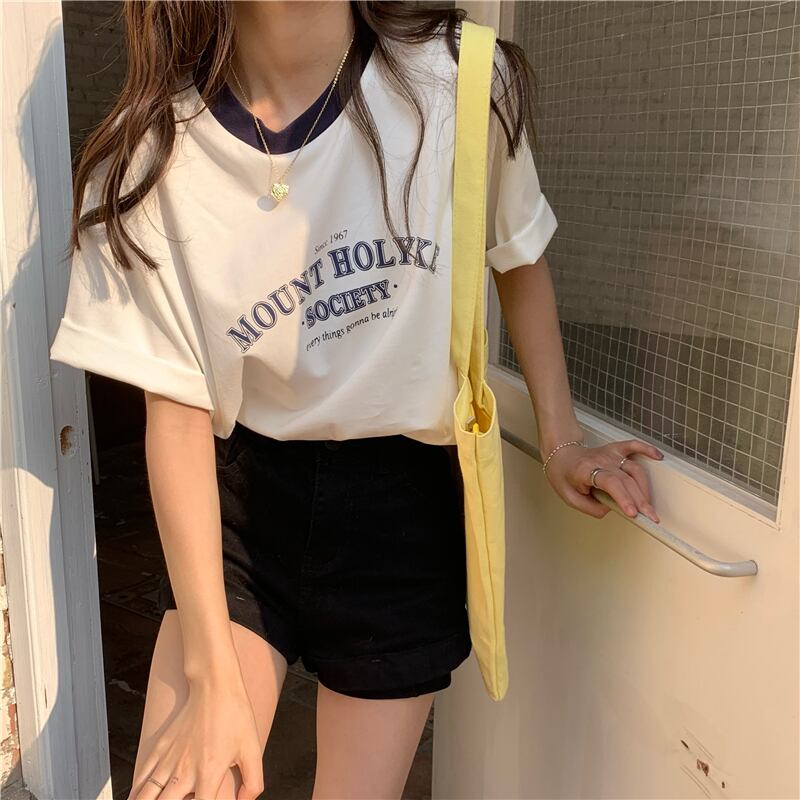Tシャツ ルーズカラーラウンドネックプリントサマースタイルカジュアルトップス 夏物 Oネック 香港の味43025323786