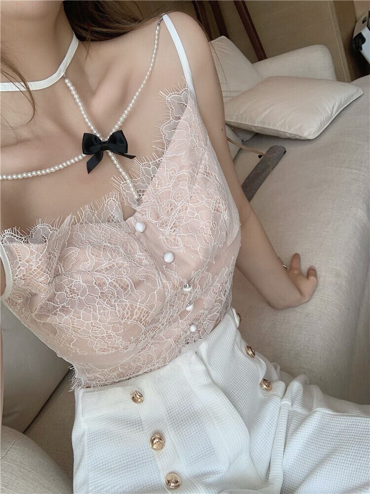 レースホルターショートサマーバックトップス 夏物 香港の味66989940722