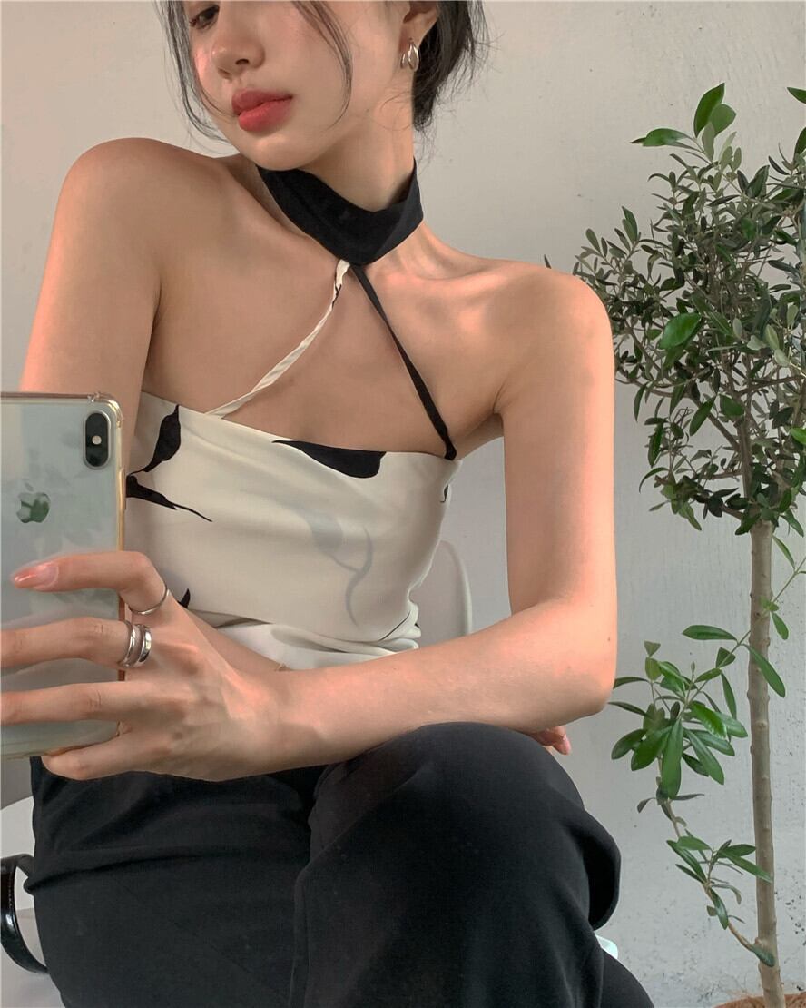 サマーホルターバックシフォントップス 夏物 香港の味45930010391