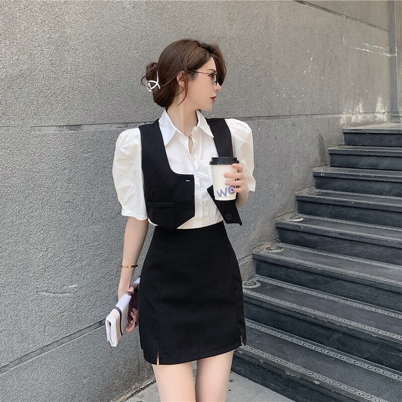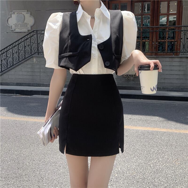 ハイウェストウェストサマーブラック薄手Aラインワンピースショート 夏物 スカート 香港の味1667491294