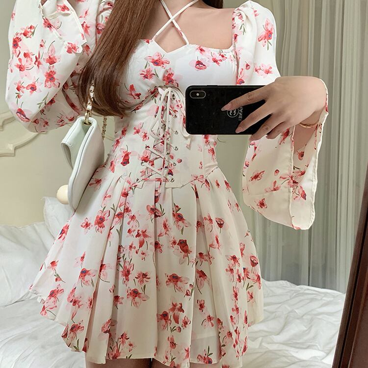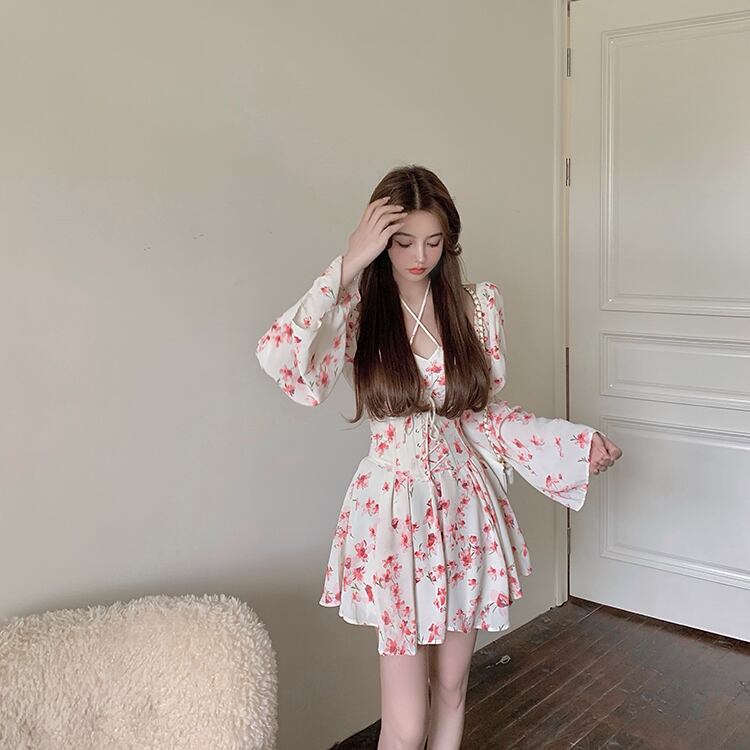 ドレス サマースカート ホルターウェストスリーブフローラル 夏物 花柄 香港の味17266937324