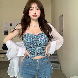 色:包まれた胸の赤い花,ブレストオーキッドパープルフローラルを包む,胸を包む-青と黄色の花,カーディガンホワイト,カーディガンピンク