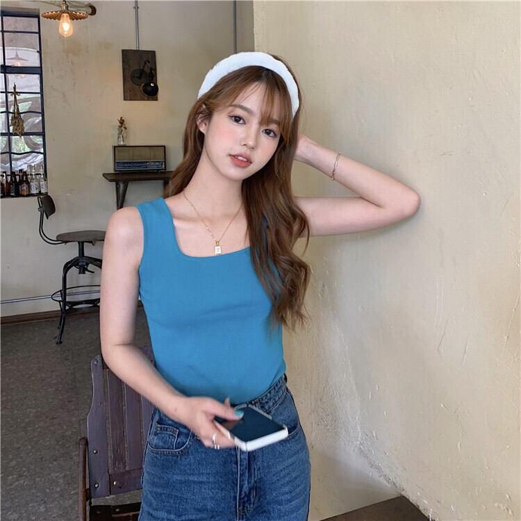 サマーショートノースリーブレッドニットバックトップス 夏物 香港の味7394419995
