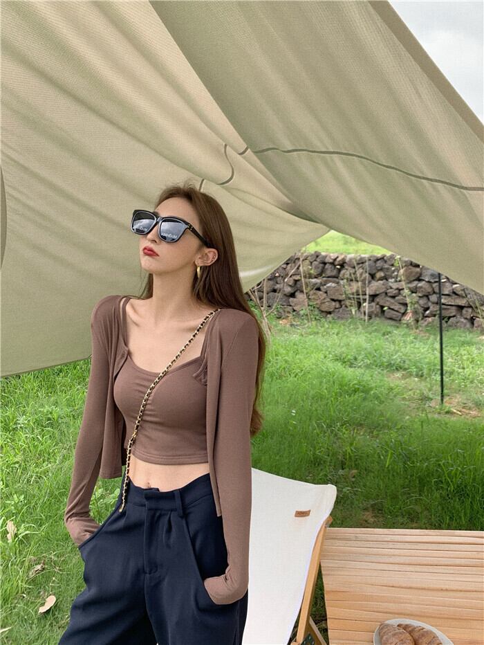 Tシャツ シャツ スタイルカーディガンスプリングショートトップス ロング 春物 香港の味81458729683