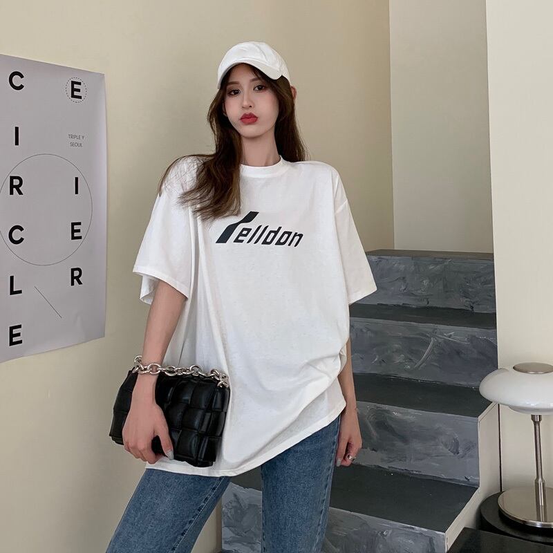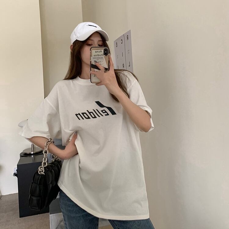 Tシャツ レディースサマースタイルプリントルーズカジュアルブラックトップス かわいい 夏物 香港の味83280367158