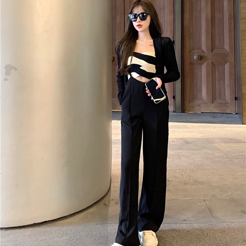 サマーハイウェスト薄手パンツ ルーズブラックカジュアル 夏物 香港の味98936915854