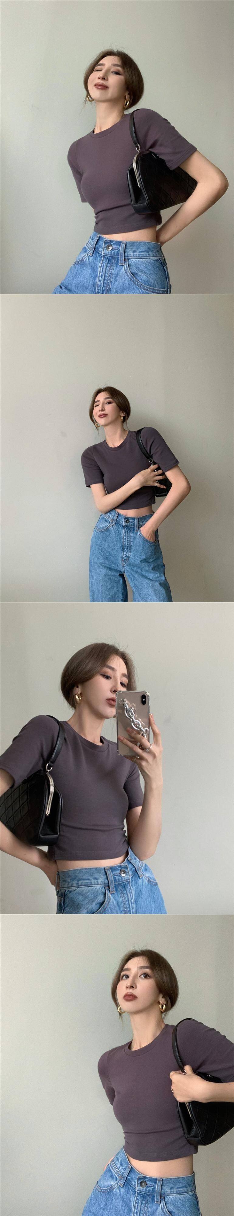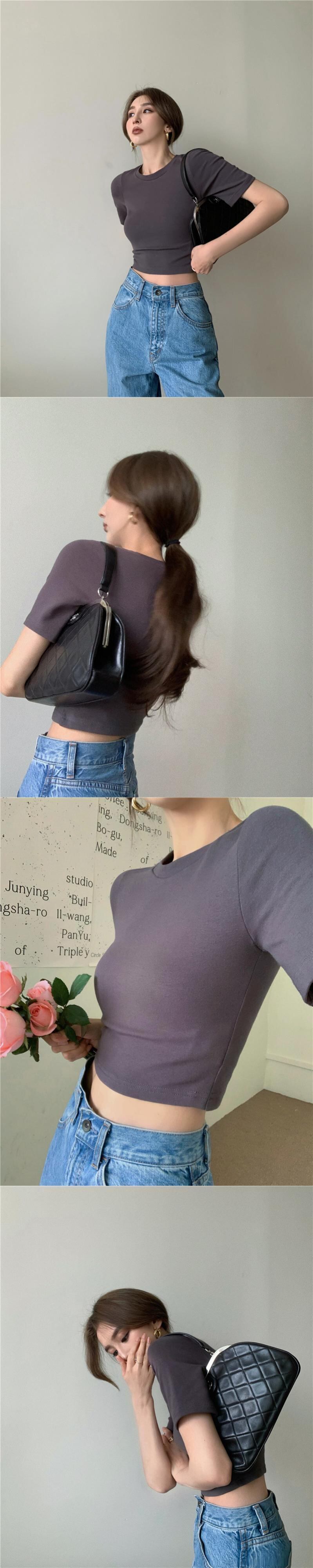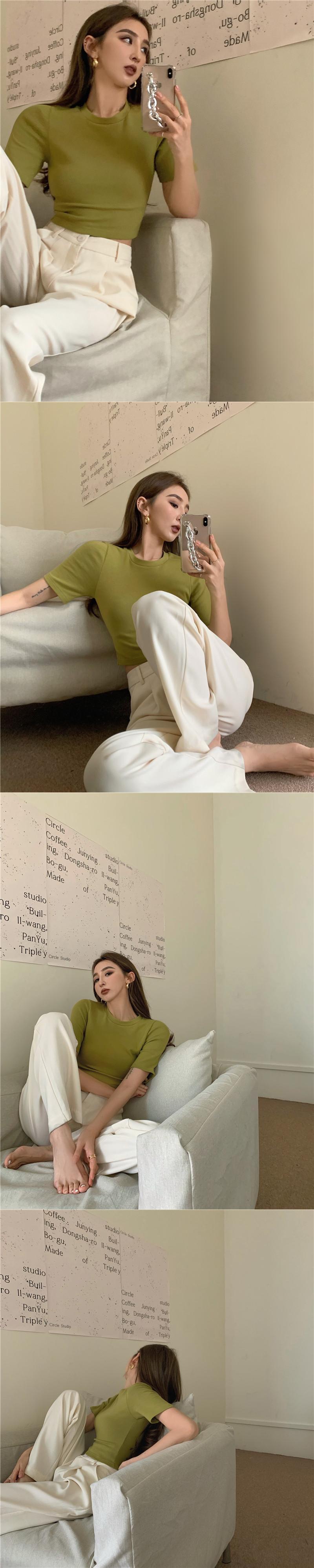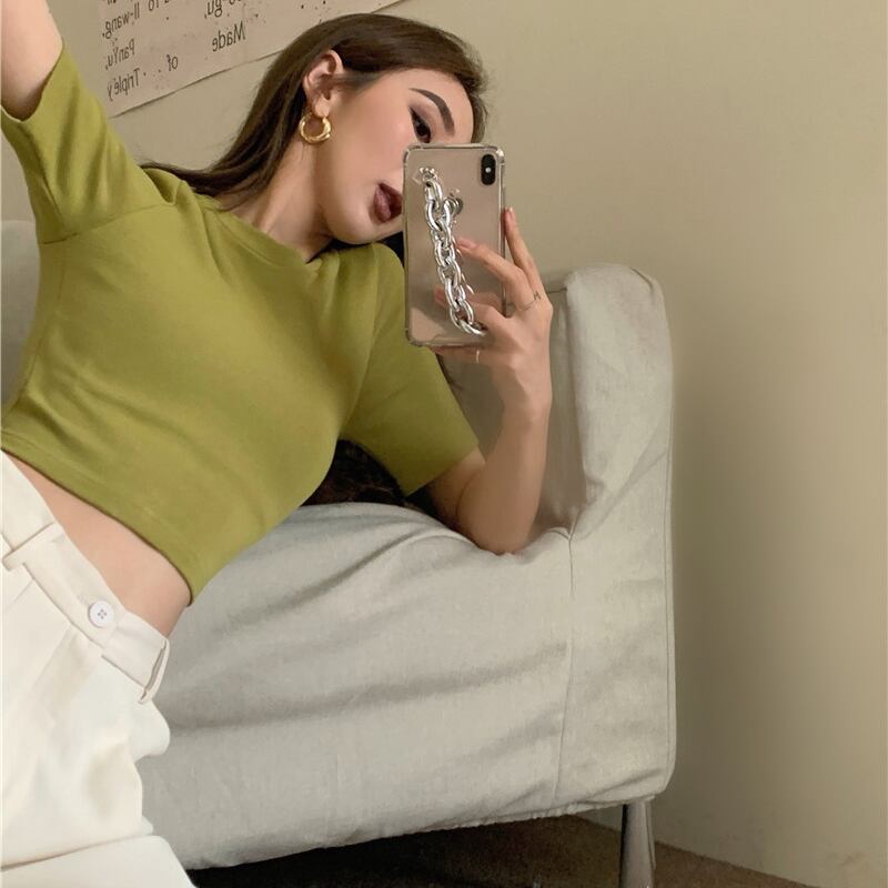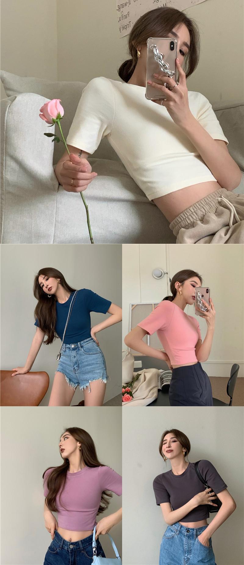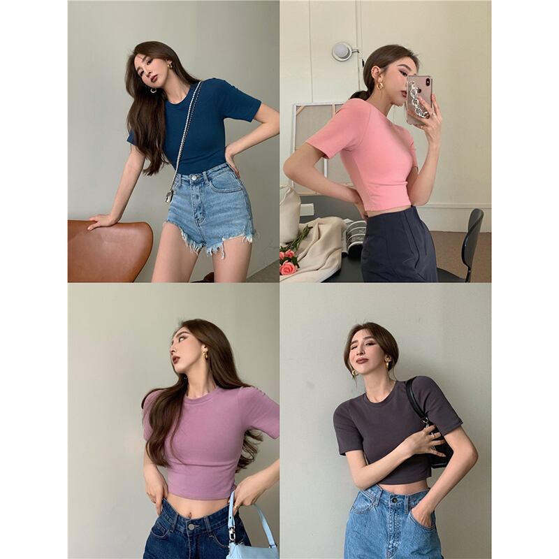 ショートTシャツ サマーベーシックスリムソリッド カラークロップトップ トップス 夏物 ソリッドカラー 香港の味72136884745