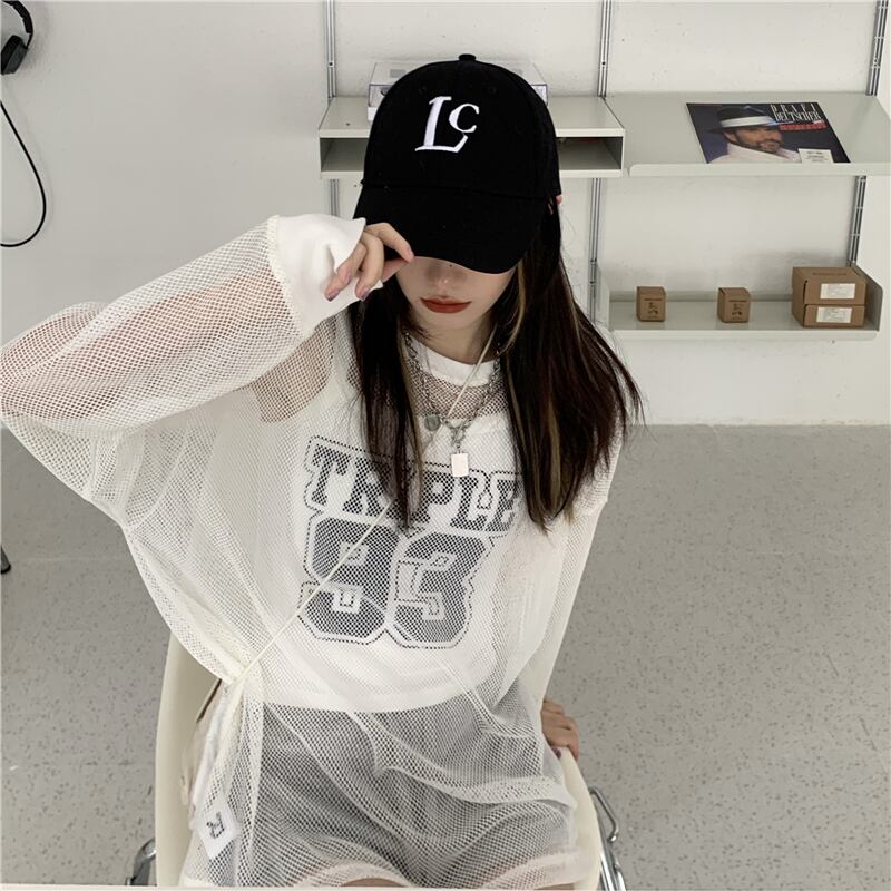 Tシャツ 薄手メッシュサマールーズホワイトブラウス トップス ロング 夏物 香港の味76216210501