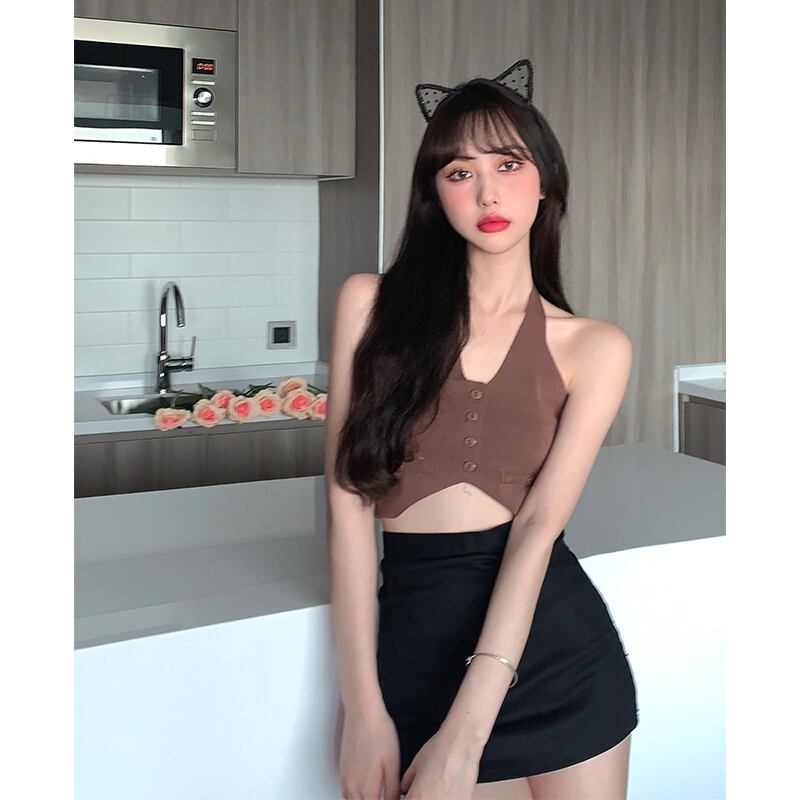 レディースVネックニットサマーホルターショートジャケット 夏物 香港の味29856515086