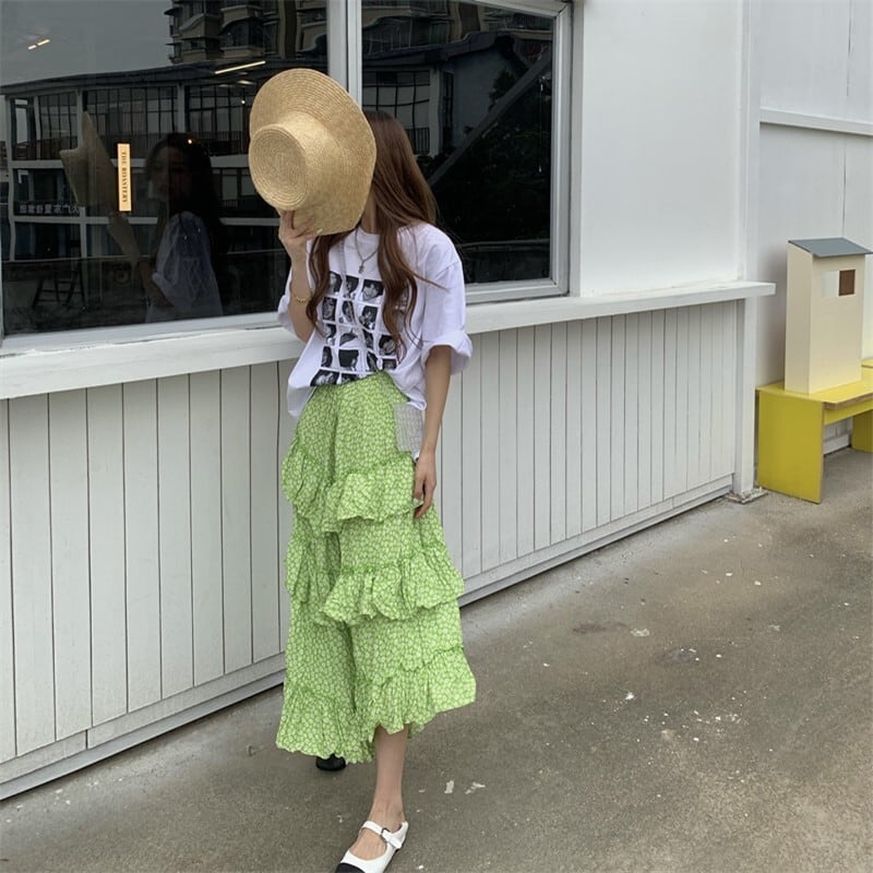 フローラルスタンダードシフォン ハイウェスト レトロ 花柄 スカート 香港の味89352628213