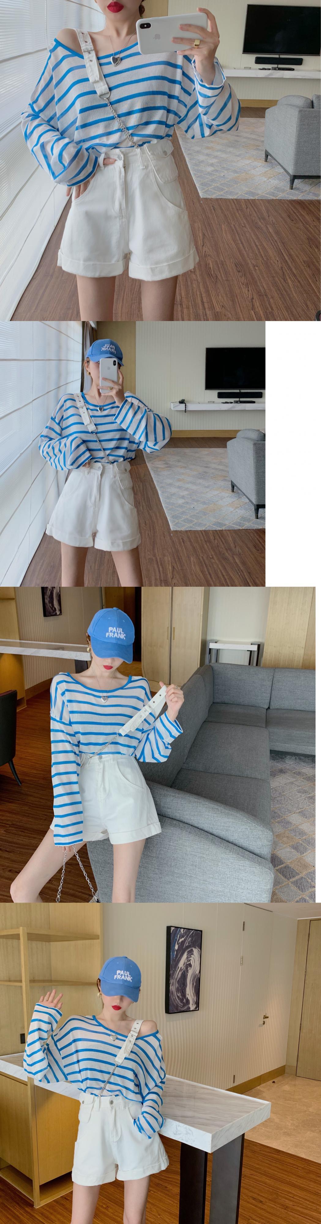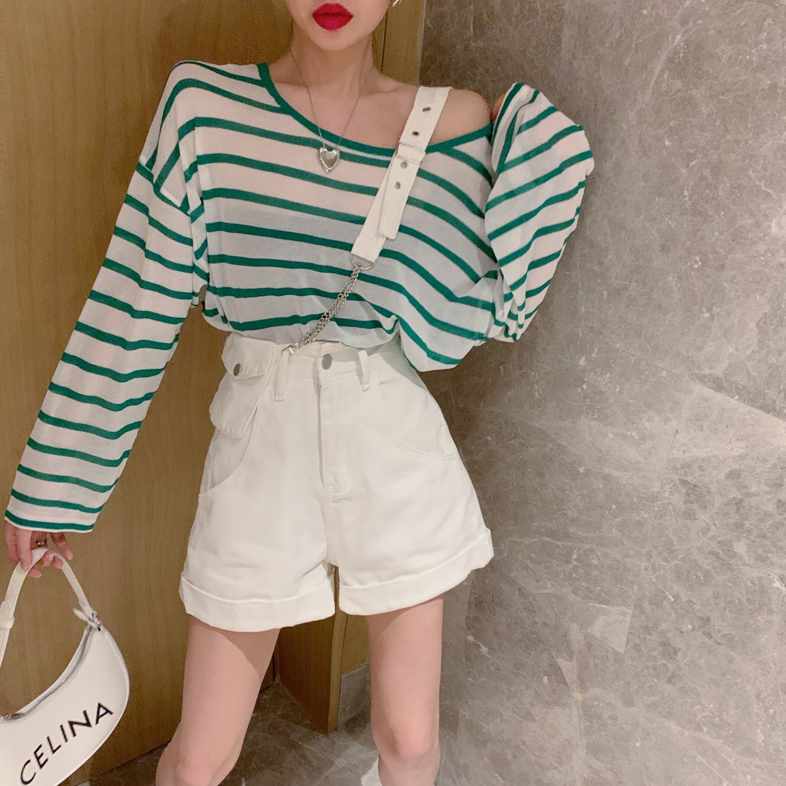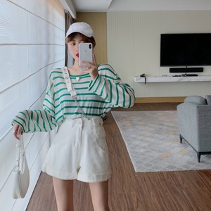 ストライプTシャツ 薄手サマールーズカジュアルトップス ロング 夏物 シルク 香港の味61040270774
