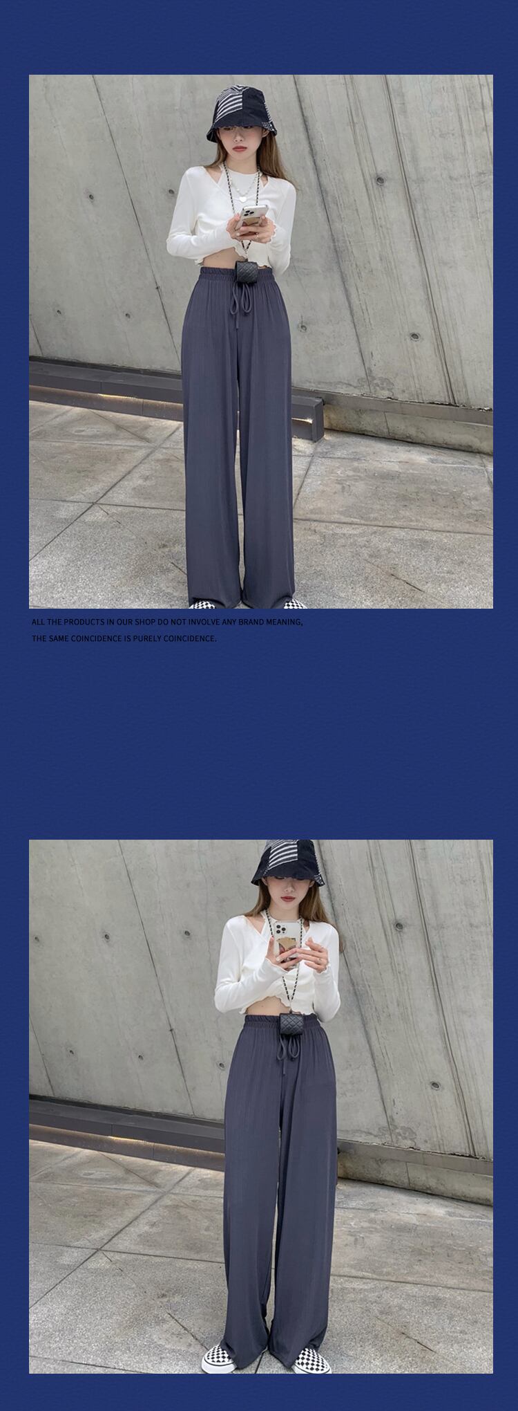 ワイドレッグパンツ ハイウェストウェストルーズ薄手サマーカジュアル 夏物 ワイドパンツ シルク 香港の味23773315427