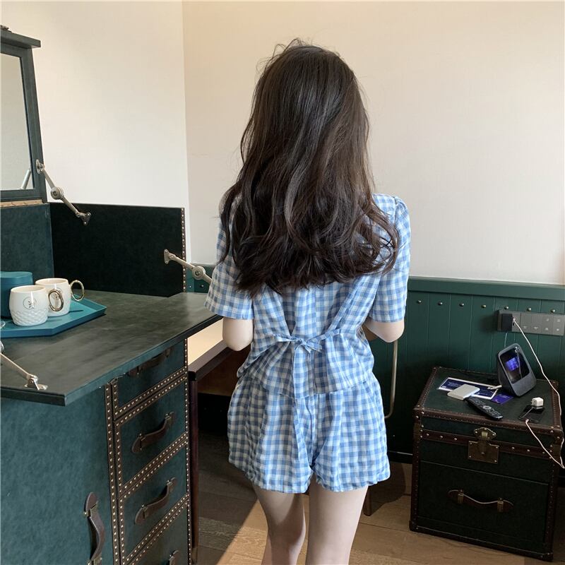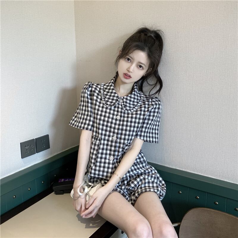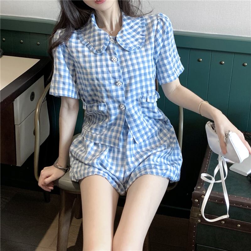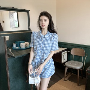 サマー格子柄シャツ ハイウェストショーツ 大人ガーリー スウィート キュート カジュアル 夏物 ブルマー 香港の味64057081645