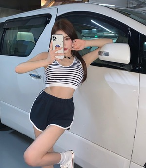 色:ピンクのベスト,ピンクのショートパンツ,ブルーショートパンツ,ストライプベスト