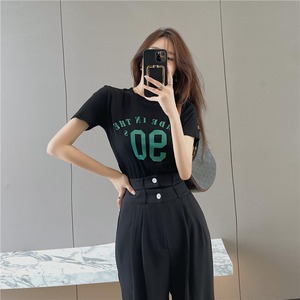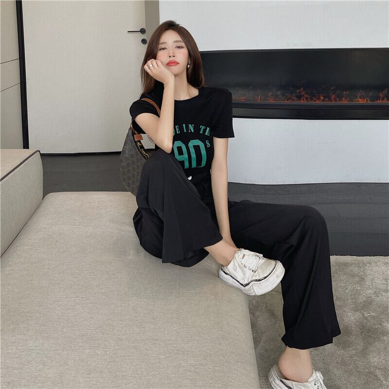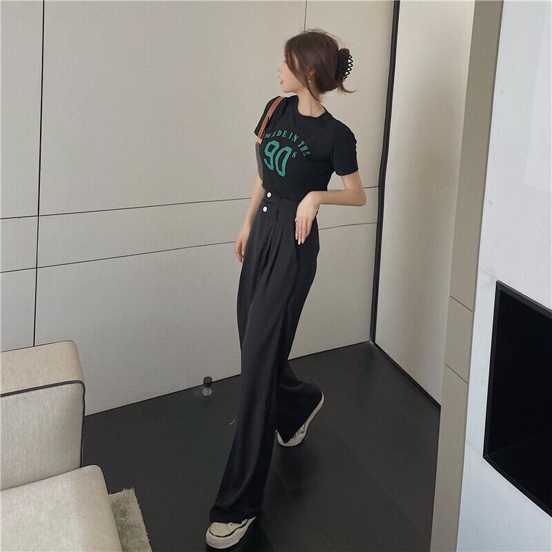ウェストスリムワイドレッグパンツ ショートバックTシャツ ワイドパンツ 香港の味81719870968