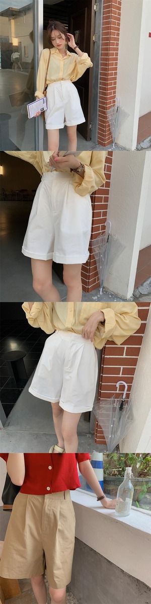 ショーツ スタイルルーズパンツ 薄手サマースタンダードハイウェストウェストワイドレッグカジュアル レトロ 夏物 ブルマー ワイドパンツ 香港の味11842250711