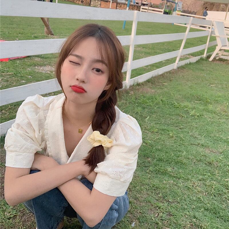 カラーシャツ スリーブサマーショートスタイルホワイトブラウス レディース 大人ガーリー スウィート キュート カジュアル 夏物 香港の味48114725626