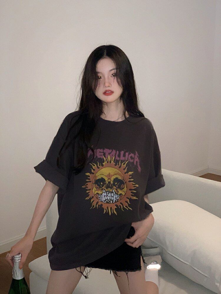 Tシャツ レディースルーズサマー薄手プリントラウンドネックカジュアルトップス 夏物 Oネック 香港の味56696825208