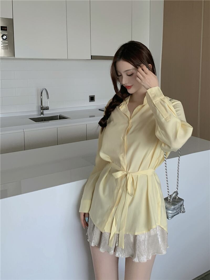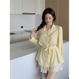 シャツ 薄手サマーウェストストラップ スタイルスタンダードカラーシフォントップス レトロ 夏物 香港の味63478703061