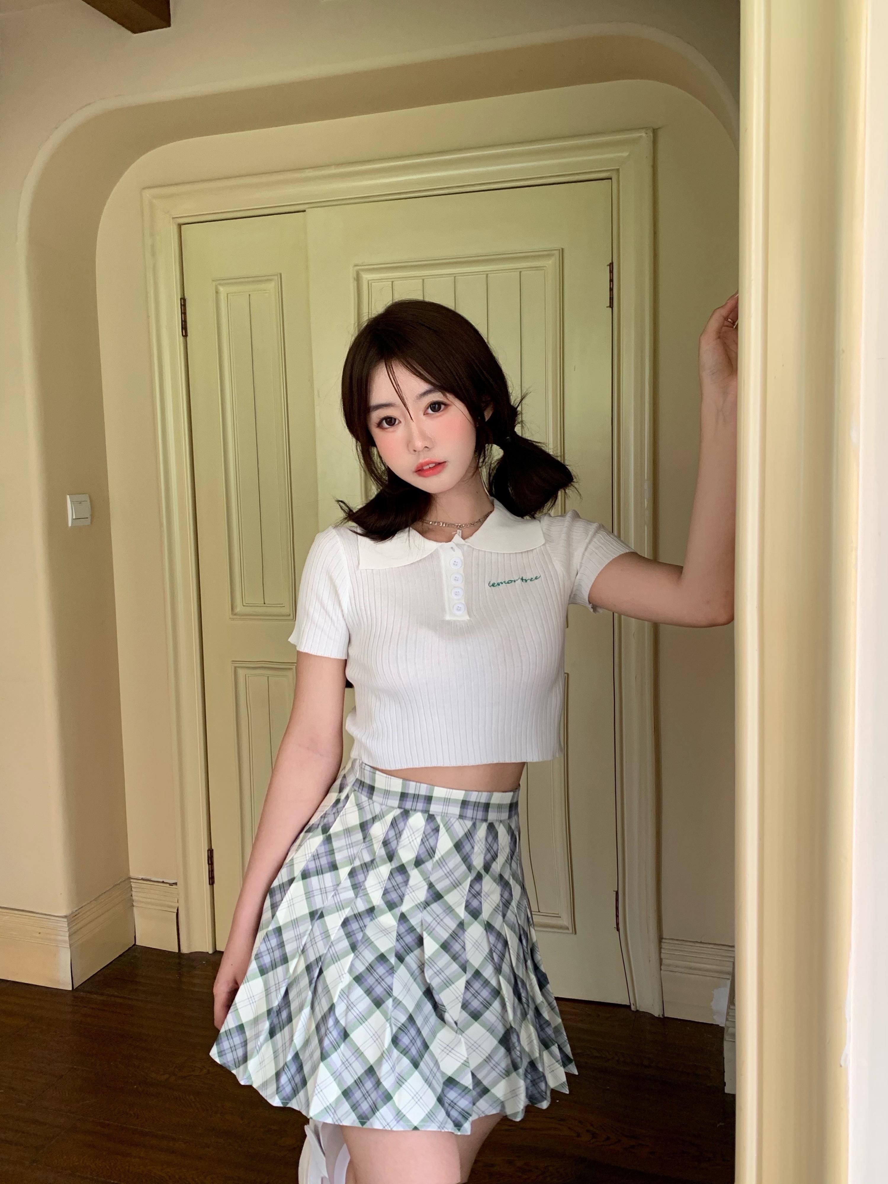 ニットショートトップス Tシャツ 格子柄スカート 香港の味96562311247