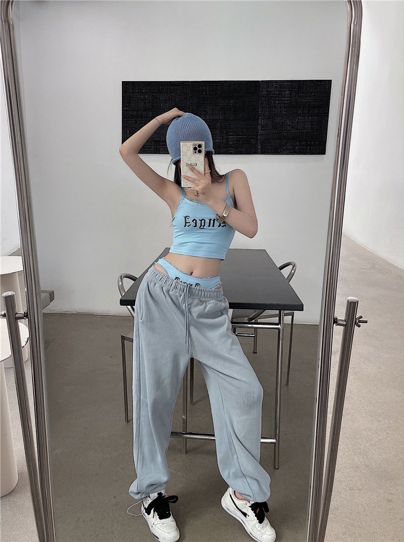 色:グレーブルーのズボン(ワンサイズ),レーススリング+レースショーツ