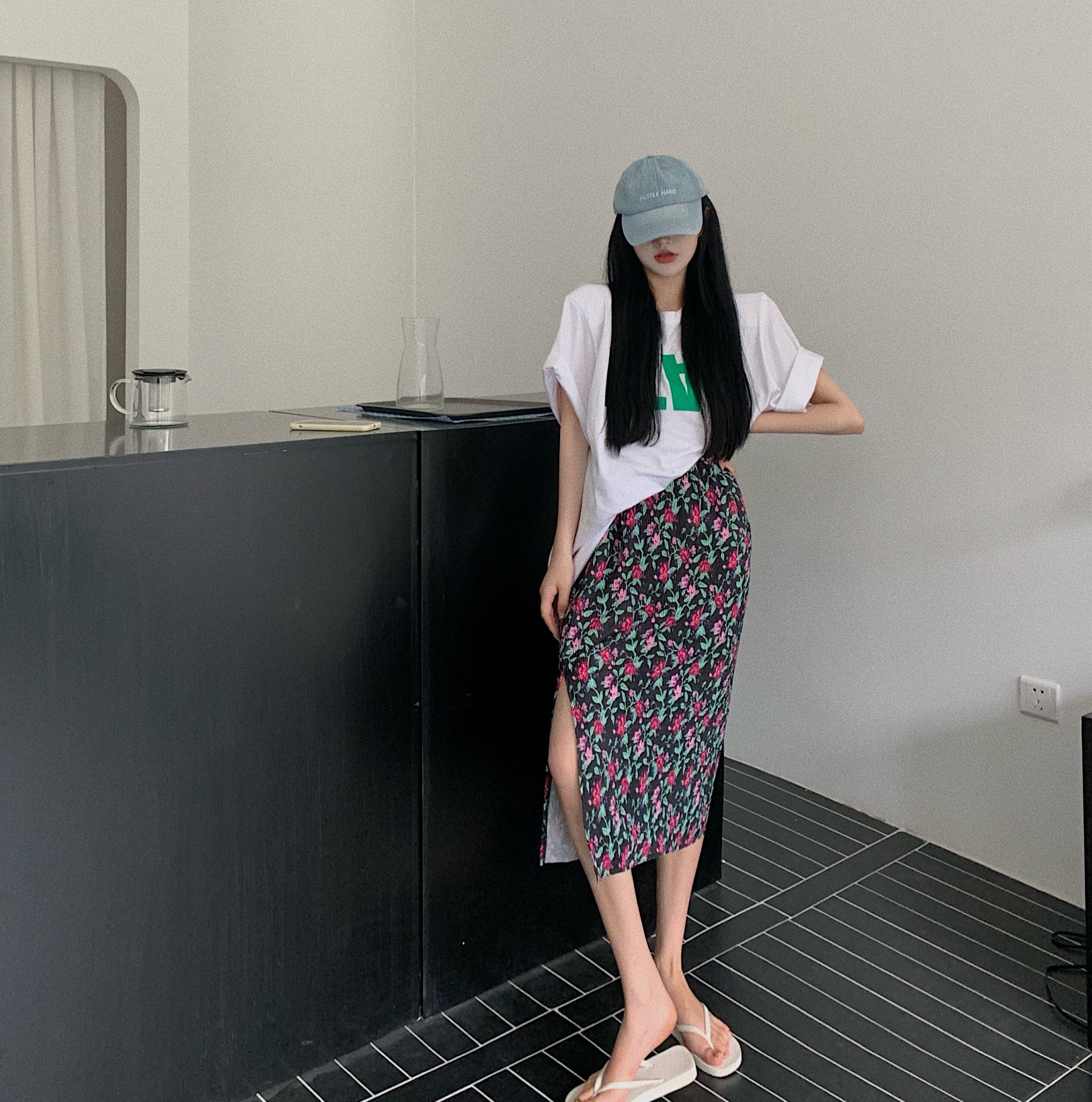 フローラルスカート サマーハイウェストウェスト薄手Aライン 夏物 花柄 香港の味11427200885