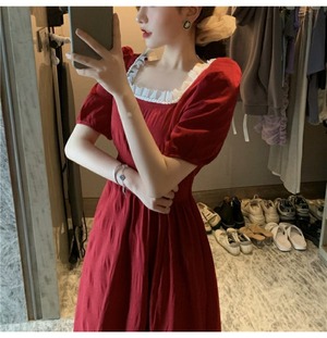 スリーブドレス サマースタンダードメッシュスカート レトロ 夏物 スクウェア ステッチ 香港の味12161523180