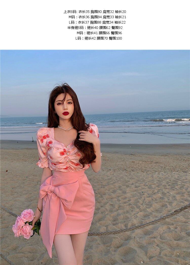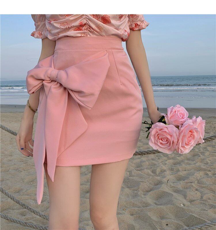 スカート サマーリボンハイウェストウェストスリムショート ピンク 夏物 香港の味10537586553