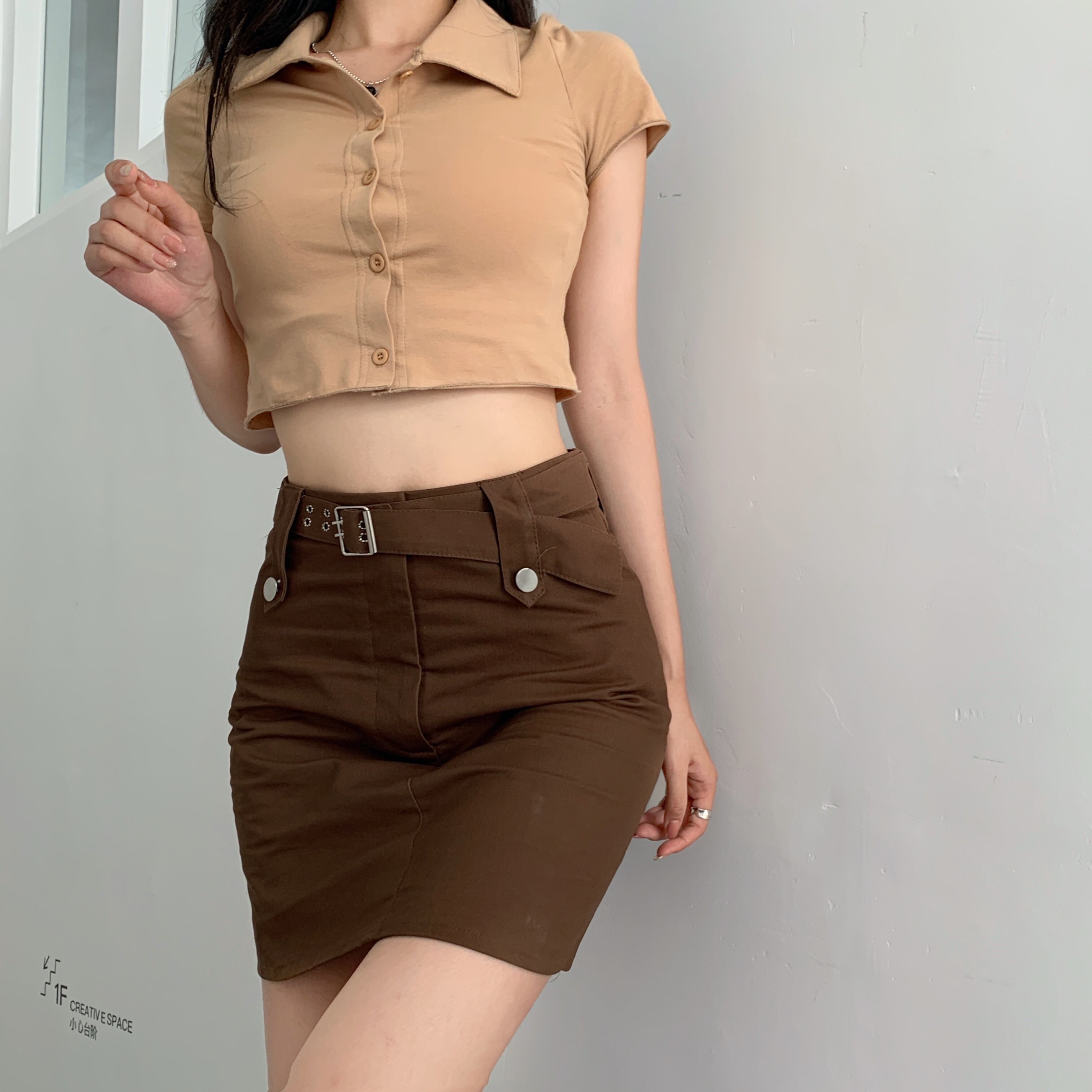 ブラウンスカート サマー薄手ショートスリムハイウェストウェストカジュアルレディース ストリート 大人ガーリー スウィート キュート 夏物 香港の味36029445173