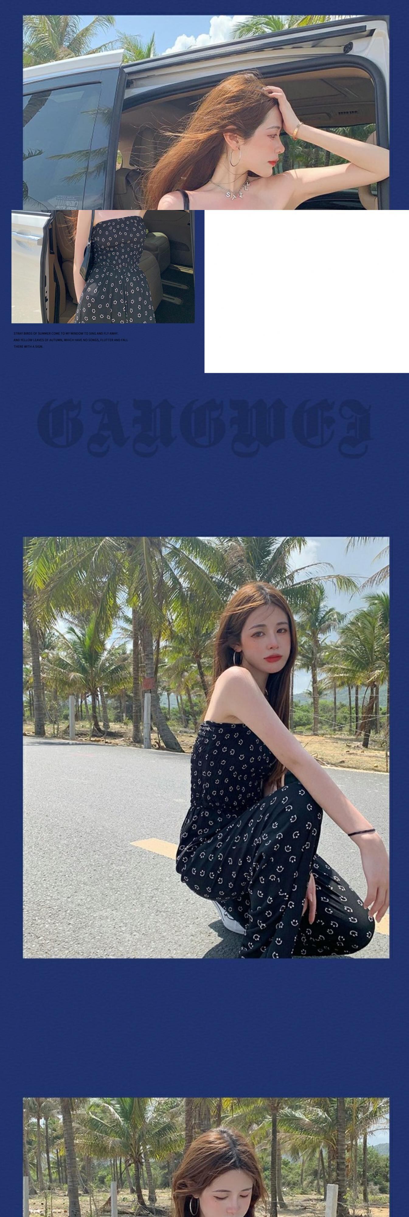 ジャンプスーツ オールインワン レディースサマーハイウェストウェストルーズワイドレッグパンツ プリントトップス 夏物 ワイドパンツ 香港の味32869840583