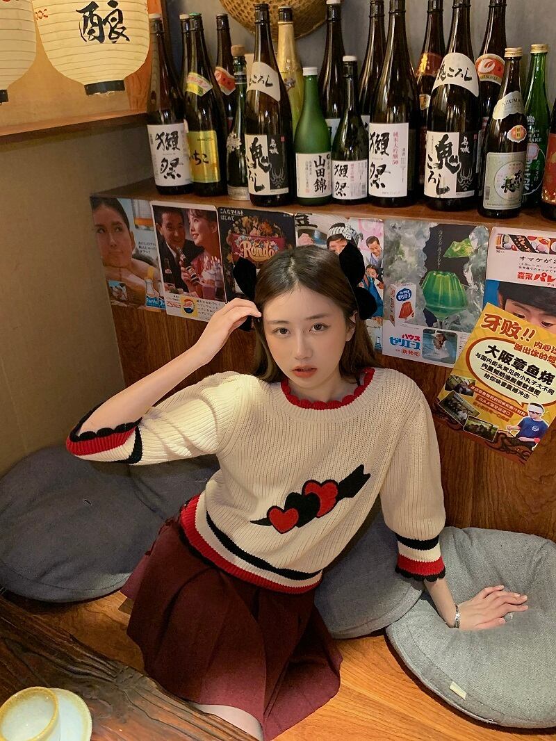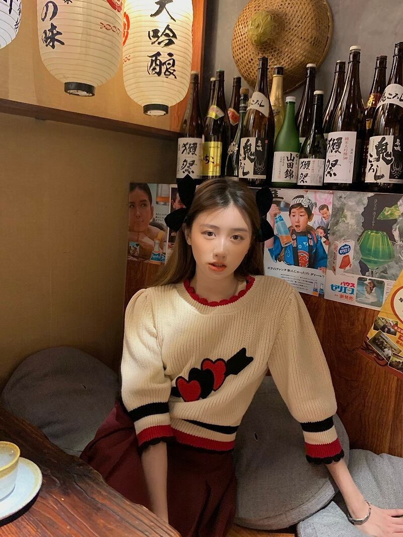 色:LOVEセーター,バーガンディスカートS,ブルゴーニュスカートM