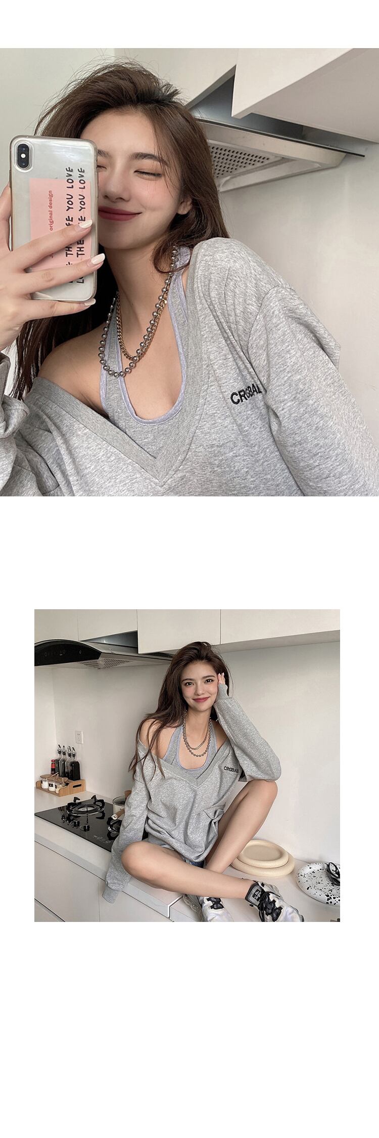 Vネックセーター レディースルーズスプリングトップス 春物 オフショルダー 香港の味50692851178