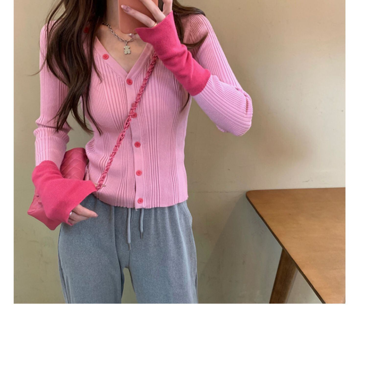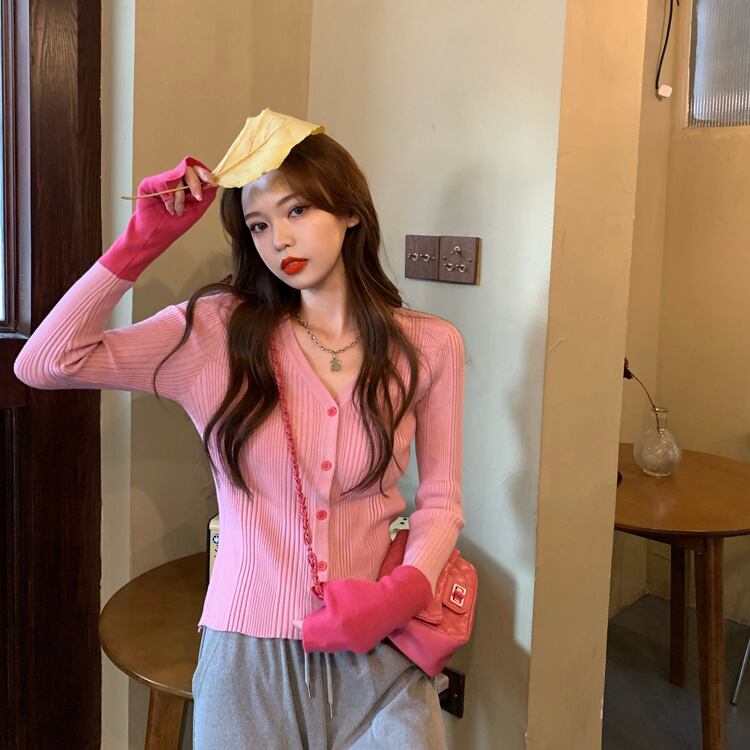 セーター カーディガンスプリングVネック薄手スリムニットジャケット ショートトップス 春物 香港の味37500096826