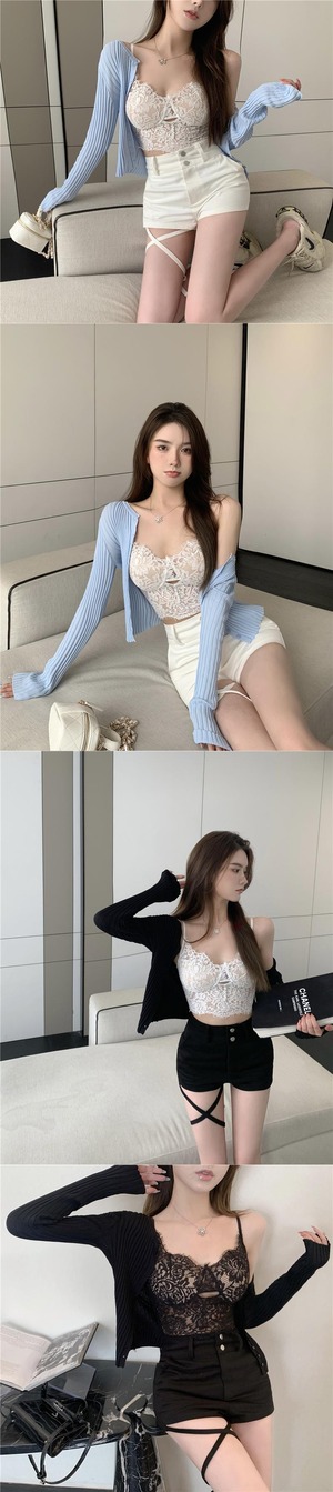 色:ブルーカーディガン,ブラックカーディガン,ホワイトサスペンダー,ブラックサスペンダー,ホワイトショーツ,黒のショートパンツ