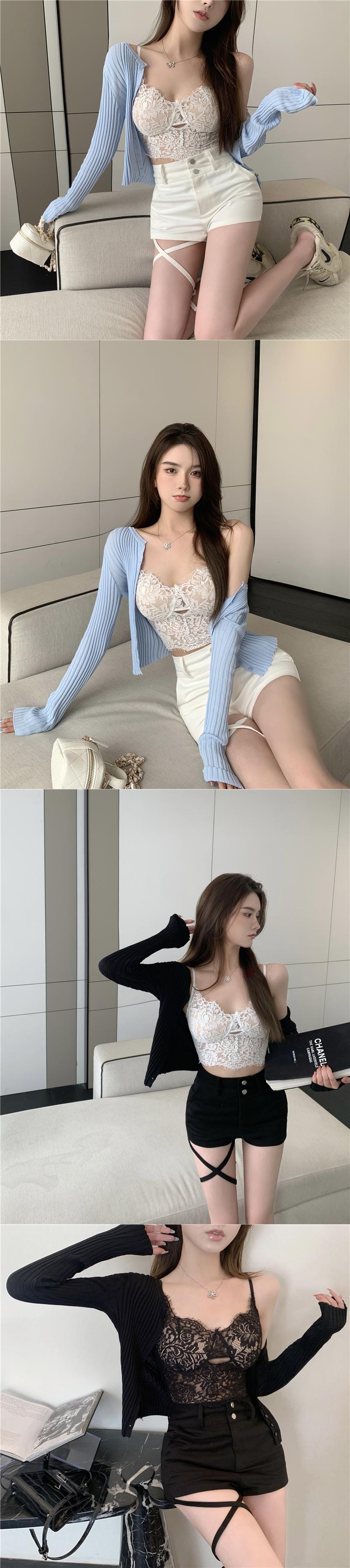 レースサマー薄手バックスタイルスリムショートトップス 大人ガーリー スウィート キュート カジュアル 夏物 香港の味72921619047