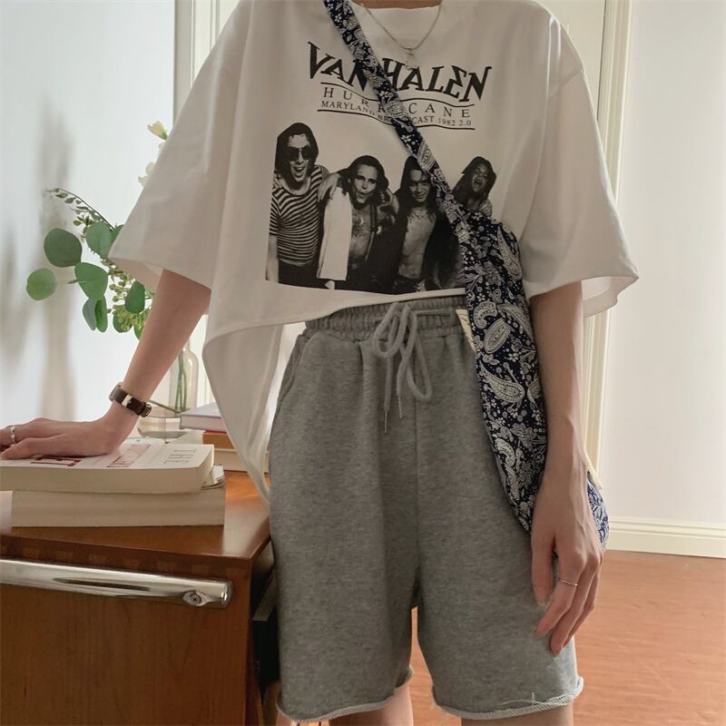 Tシャツ サマーラウンドネックプリント柄ショートルーズトップス 大人ガーリー スウィート キュート カジュアル 夏物 Oネック 香港の味15821951591