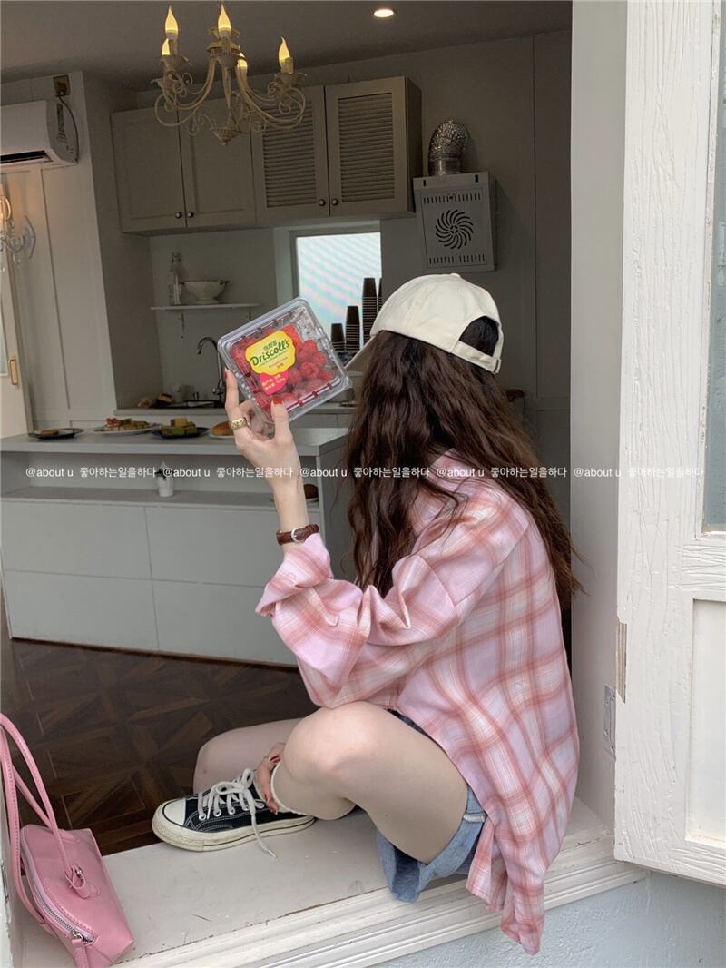 サマースタイル格子柄薄手シフォンカーディガンシャツ レディース ロング 夏物 香港の味17790801635