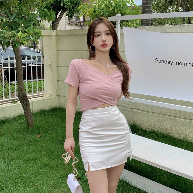 Tシャツ レディースサマーショートスタイルクロップドスリムトップス 大人ガーリー スウィート キュート カジュアル 夏物 香港の味46522726798