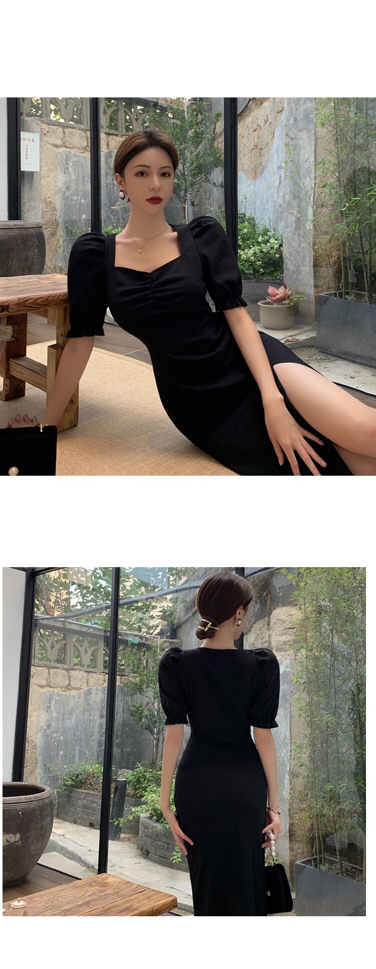 スタイルドレス スタンダードスリーブウェストスカート サマー レトロ 夏物 スクウェア 香港の味43479425785