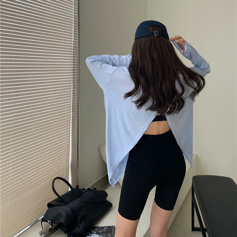 Tシャツ レディースサマー薄手バックルーズカジュアルトップス ロング 夏物 シルク 香港の味49053302062