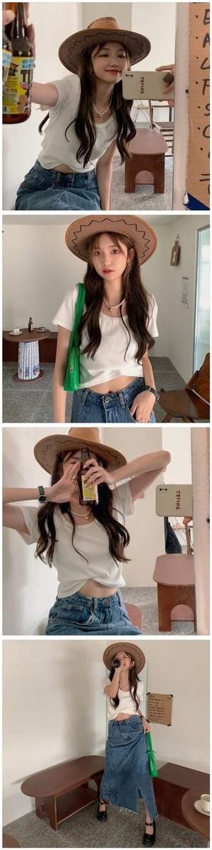 ショートトップス サマースリムソリッド カラーベーシックTシャツ 夏物 ソリッドカラー 香港の味24256805781