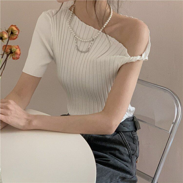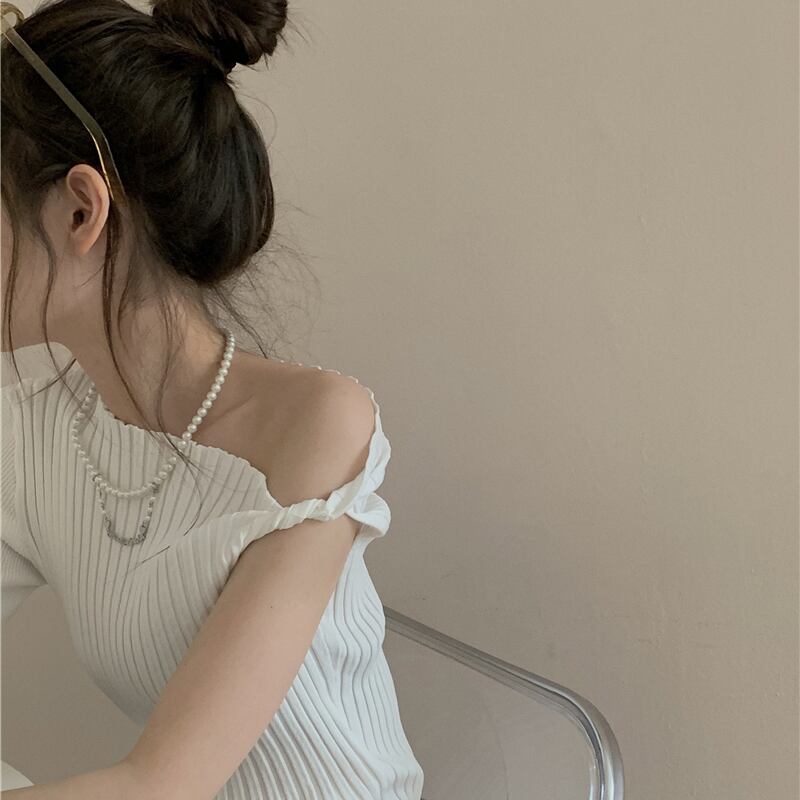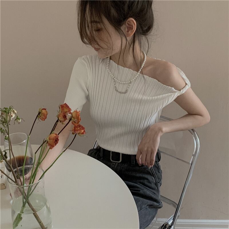 ニットセーター 薄手レディーススリムカラーサマーストラップレスホワイトトップス 夏物 香港の味91000530782
