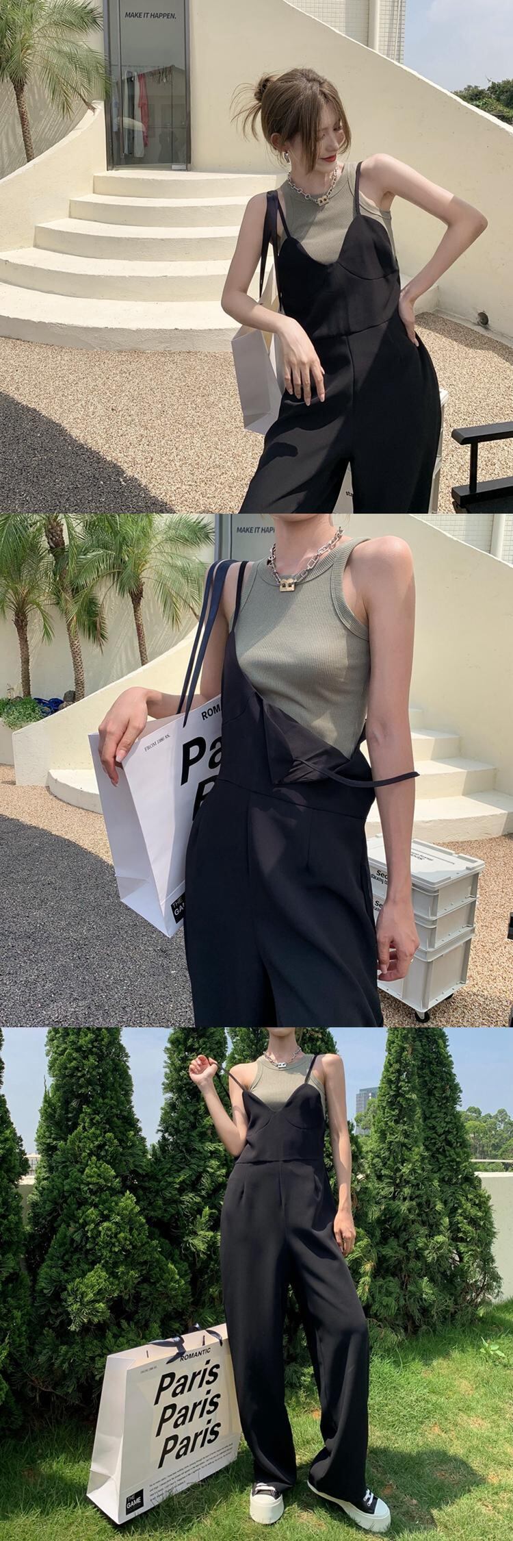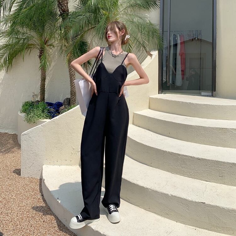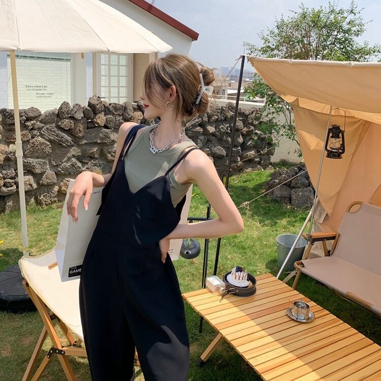 パンツ サマー薄手ワイドレッグハイウェストウェストジャンプスーツ オールインワン ルーズカジュアルカーキ 夏物 ワイドパンツ 香港の味42515347413