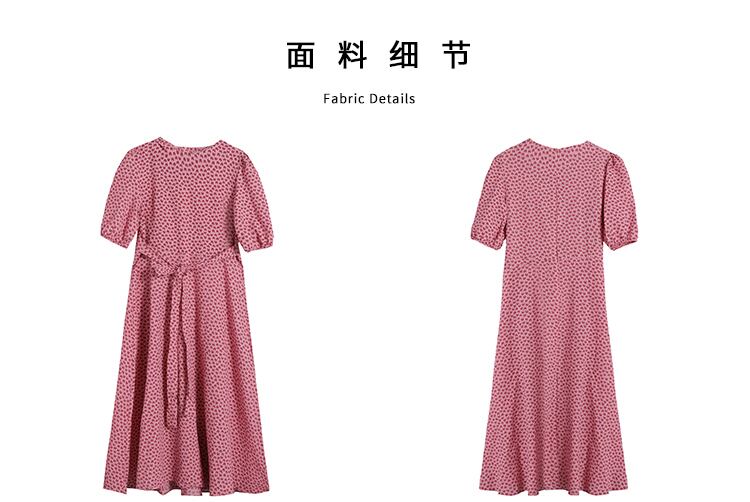 ドレス ウェストサマーロングスリーブフローラルスカート ピンク 大人ガーリー スウィート キュート カジュアル 夏物 花柄 香港の味32021894584