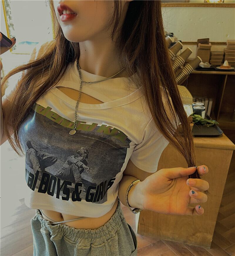 プリントショートTシャツ サマースタイルスリムトップス 夏物 香港の味52622982195