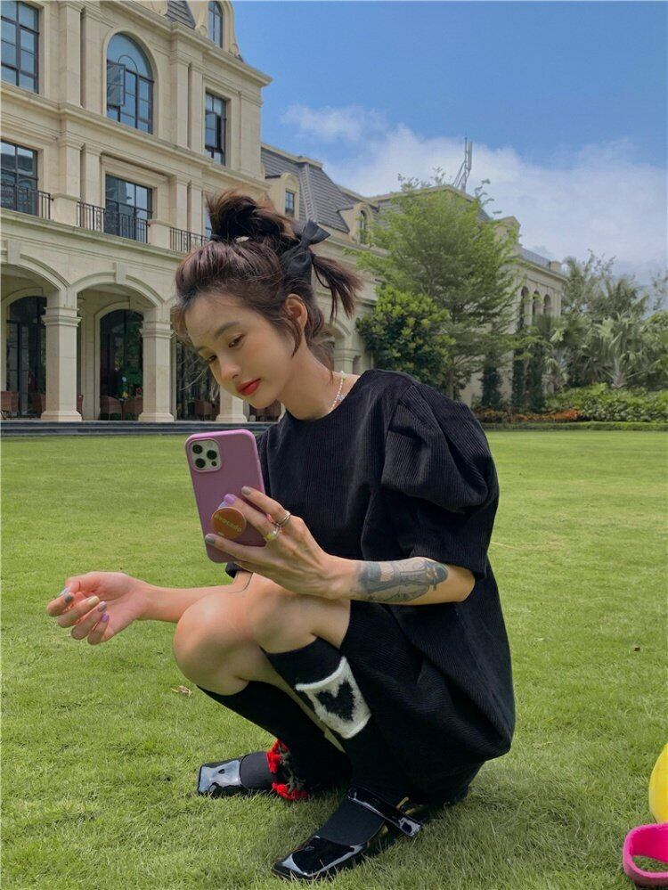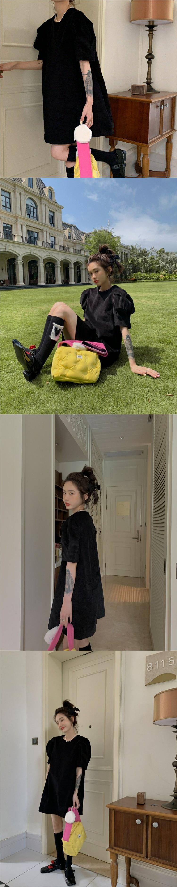 スリーブドレス サマースタイルスカート ブラック薄手ショート 夏物 香港の味36316931413