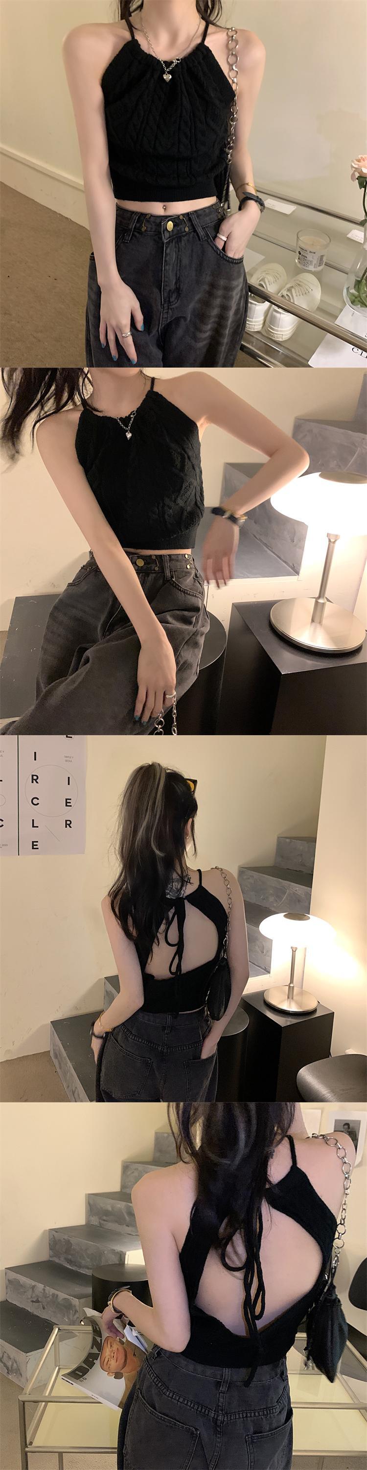 サマーノースリーブニット オフショルダーショートレディース 夏物 ピュア 香港の味61083919451