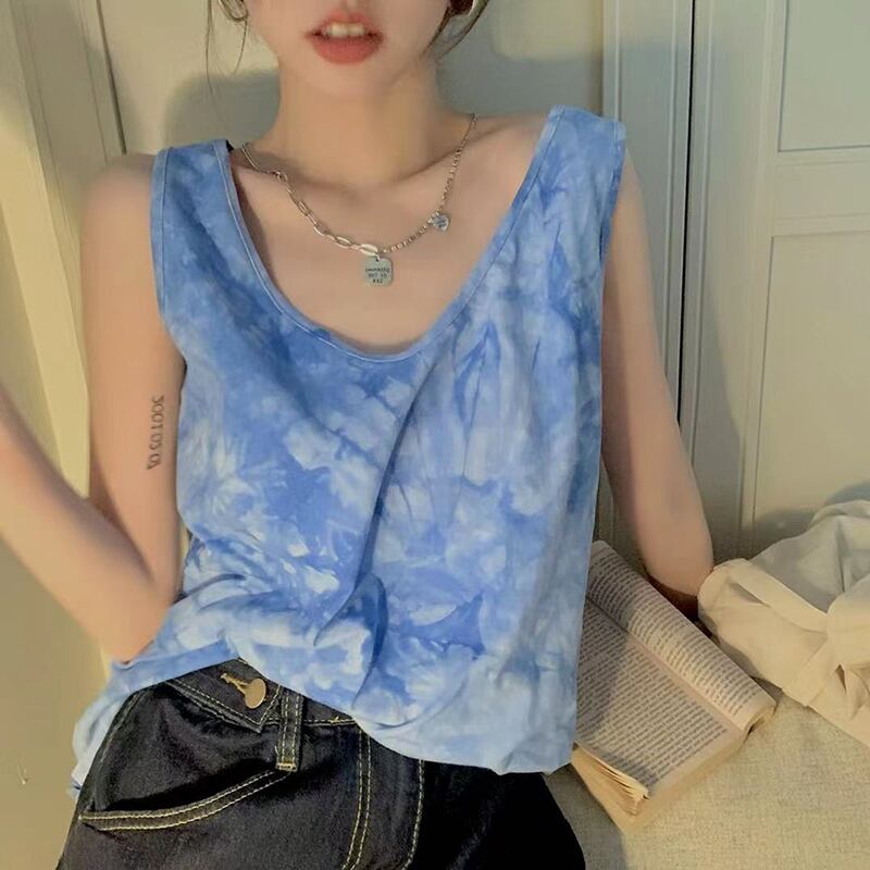 ノースリーブTシャツ ブルーロングサマー薄手ルーズレッドトップス 夏物 香港の味42451181638