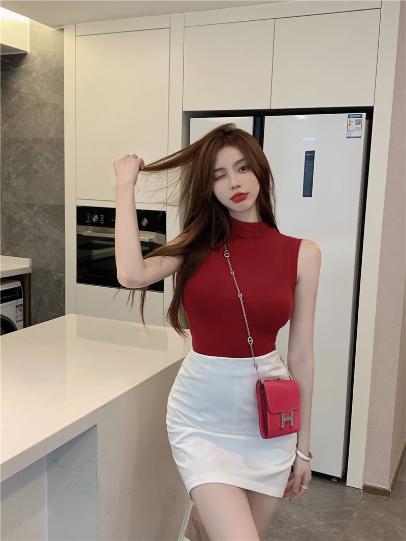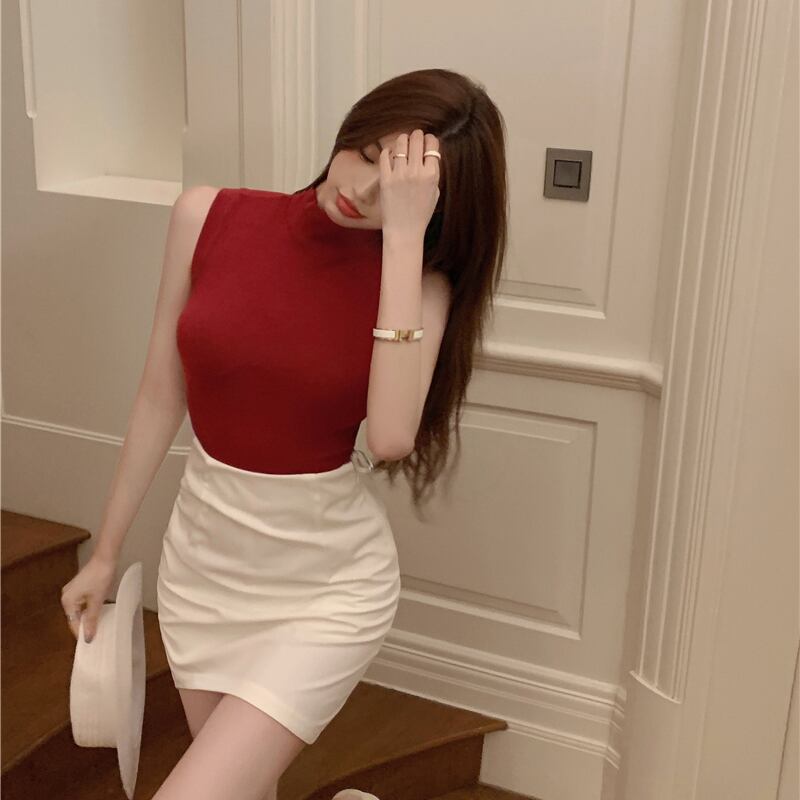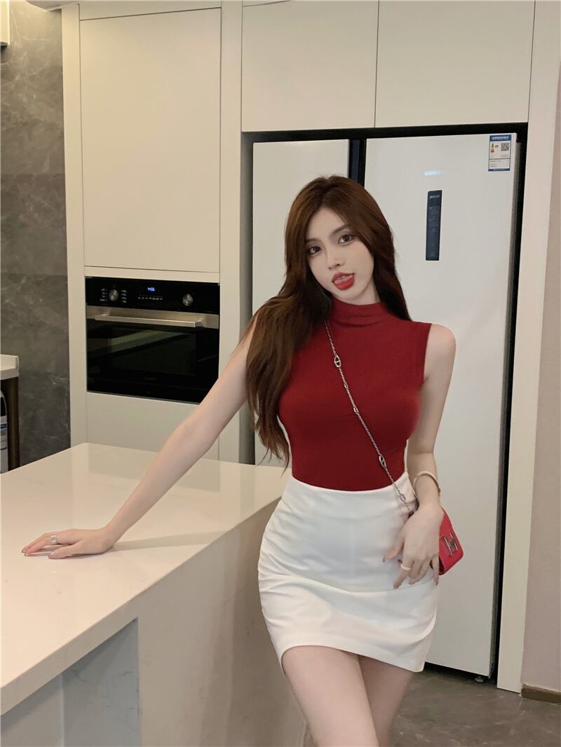 ノースリーブTシャツ 薄手サマーレッドトップス 夏物 ピュア 香港の味24880555649